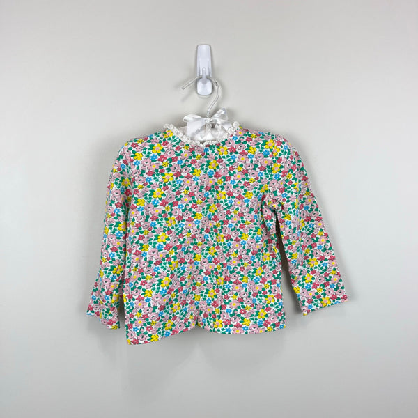 Mini Boden Long Sleeve Floral Ruffle Collar Shirt 12-18 Months