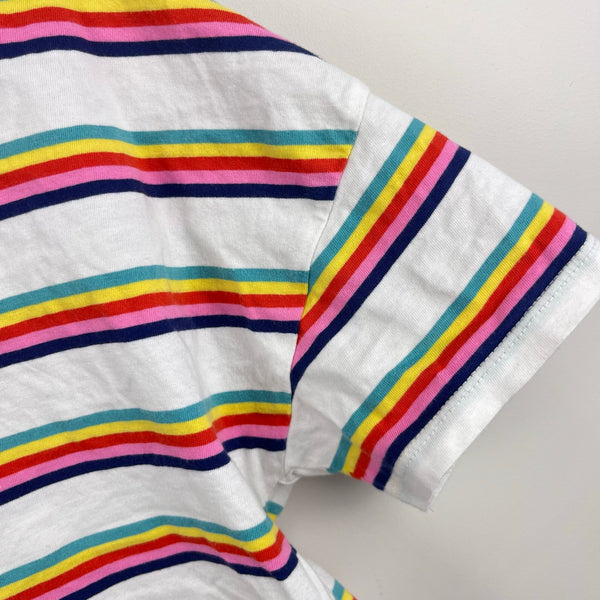 Mini Boden Relaxed Crop T-Shirt Rainbow Spaced Stripe 9-10