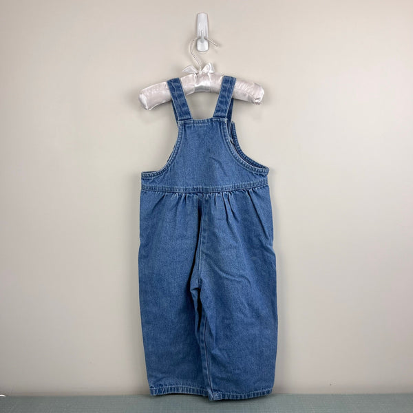 Vintage Liberty Blue Jean Garden Overalls. Toddler girl size 2T. Classic denim overalls with pleats at the waist, button straps, and garden patch on the bib pocket with flowers. Has light marks/discoloration (see photos; untreated). Perfect for spring!