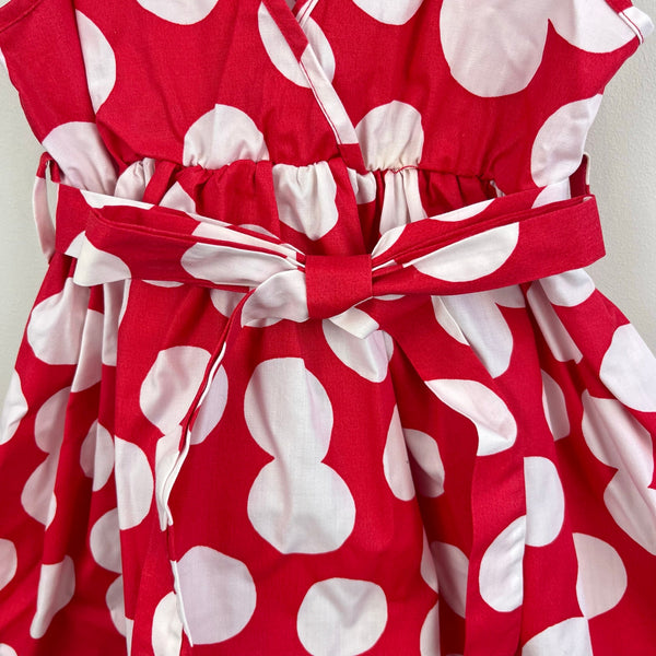 Vintage Samara Red White Polka Dot Party Dress. Toddler girl size 3T. Sleeveless dress with round bib collar. Red with bold white polka dots. Elasticized waist. Buttons and a sash to tie a bow in the back. Perfect for a party!